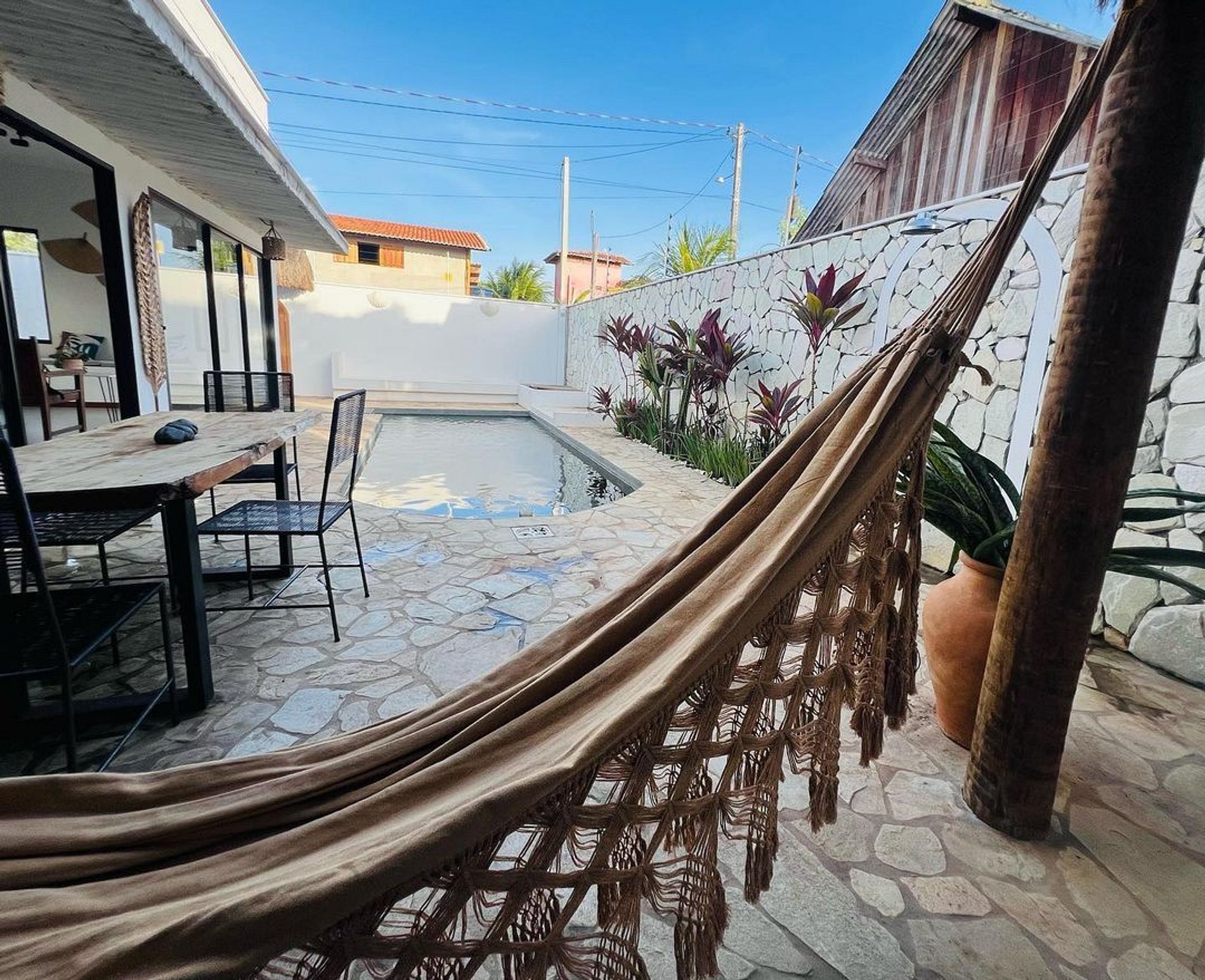 Aproveite a piscina privada para se refrescar, Wi-Fi grátis, estacionamento, rede para uma soneca à tarde estão à sua disposição.