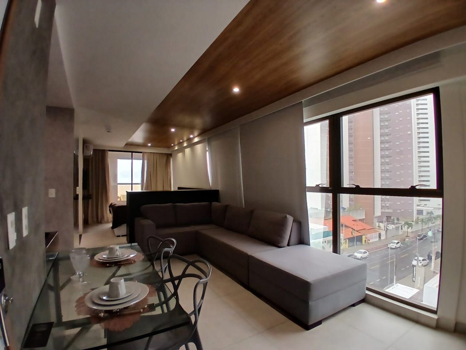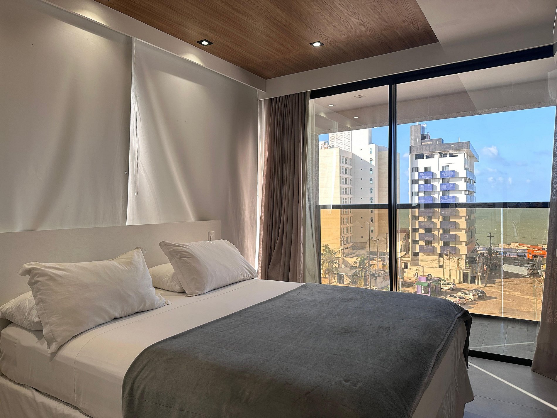 Loft com cama queen, varanda, sala e cozinha compacta. O Reserva Madero permite a você desfrutar momentos únicos de lazer com a melhor vista da cidade.